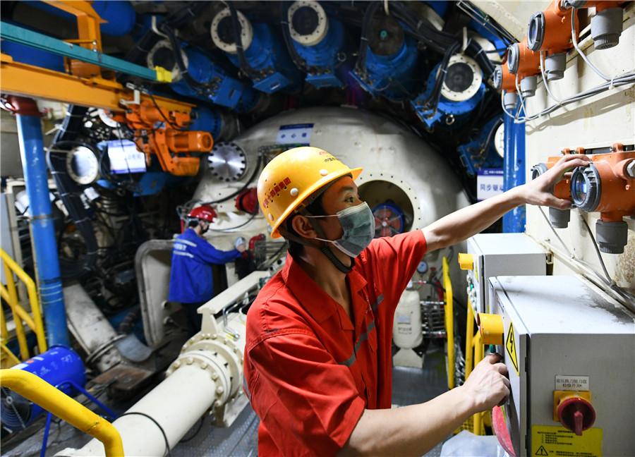 人民网芜湖5月3日电(汪瑞华)“五一”假期,安徽芜湖城南过江隧道的建设者们,依然坚守在岗位上,假期不停工,争分夺秒抢工期。