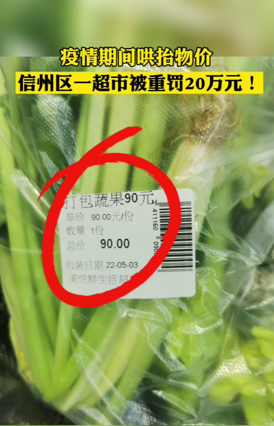 5月3日,上饶市市场监督管理局执法人员接到市民举报,信州区水南街道一便利超市在蔬菜进货价格未上涨的情况下,大幅提高销售价格。经查,该超市将蔬菜包以90元每包的高价出售,超应收价格27.68元每包,远高于市场价,进销差价率超25%。