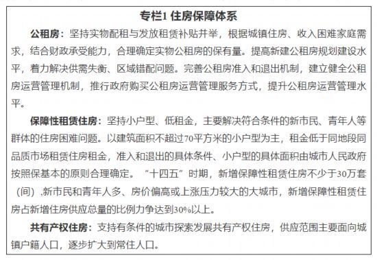 规划期内,进一步完善住房市场体系和住房保障体系;基本建立多主体供给、多渠道保障、租购并举的住房制度;推动房地产同实体经济均衡发展,推动城镇老旧小区改造和绿色社区创建行动,提升住房品质和居住环境,促进房地产市场平稳健康发展。